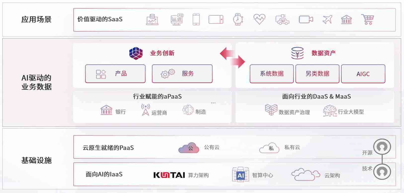 数字时代,,,,围绕企业数字化转型的关键要素,,,,234钱包数码开创性的提出数云融合战略和技术体系框架,,着力在云原生、、、、数字原生、、、AI原生和信创产业上架构产品和服务能力,,为处在不同数字化转型阶段的快消零售、、汽车、、、金融、、医疗、、、、政企、、、、教育、、、运营商等行业客户提供泛在的敏捷IT能力和融合的数据驱动能力,,,构建跨界融合创新的数字业务场景和新业务模式,,助力企业级客户建立面向未来的核心能力和竞争优势,,,,全面推动社会的数字化、、、、智能化转型升级。。
